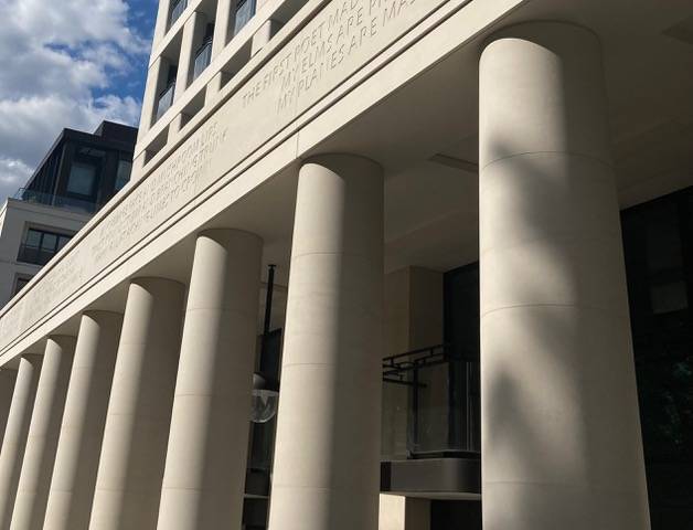 Eric Parry Architects, commissioned me to compose a poem frieze which I titled, ‘Cento’, it covers the external walls of a building at the Chelsea Barracks development and is laid across four elevations and is the longest verse inscription in the West. The 4000 characters are carved from Portuguese Limestone The poem is a vital part of the building, engaging with the areas history, gardens, and development; inviting residents and passersby to engage as readers and composers of their own poems.